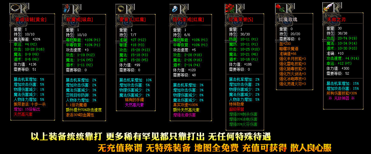 赤月装备,复古特殊装备,赤月特殊装备,赤月倍攻装备,还有超稀有装备,统统靠打!